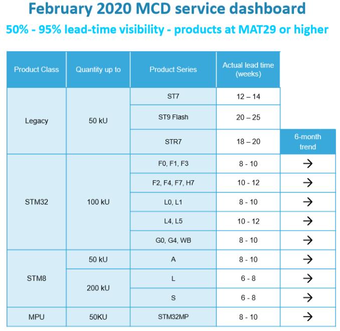 目前意大利目前是除中國以外第二大疫情國,在疫情影響下,ST會缺貨嗎?從ST發布的產品交期表來看,大部分產品的正常交期保持平穩,整體來看基本不會發生大面積的缺貨現象。除了Zilog貨期延長外,其它品牌的MCU貨期都保持穩定。但是有幾類產品還是很容易缺貨的。